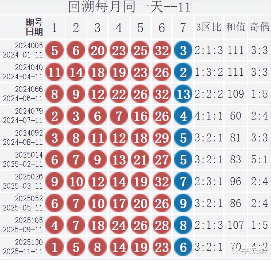 => 汇总的蓝球冷热号:热号:5,3,11,6,12冷号:2,9,8