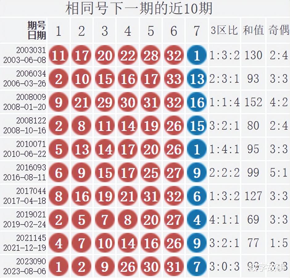 相似号下一期的近10期统计: