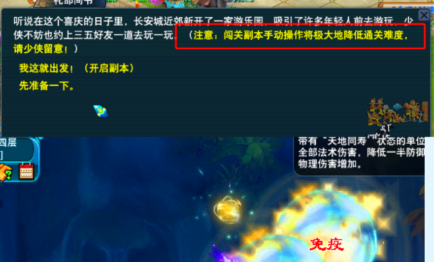 如果各位玩家玩的五开刷任务的时候打不过,那么小编建议这部分玩家手动操作,手动操作是可以降低战斗难度的,然而令小编没想到的是在本次十一活动的小副本玩法中系统居然直接把这一项给标注出来,在十一活动的小副本中心里就直接写明了,闯关副本时手动操作将会极大地降低通关难度,反之意思就是如果各位玩家是挂机操作的,那么战斗的难度会被极限提升。
