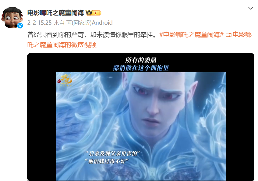 电影第二部中,敖丙依然坚守“重振龙族”的使命,见到父亲后第一时间哭着道歉: