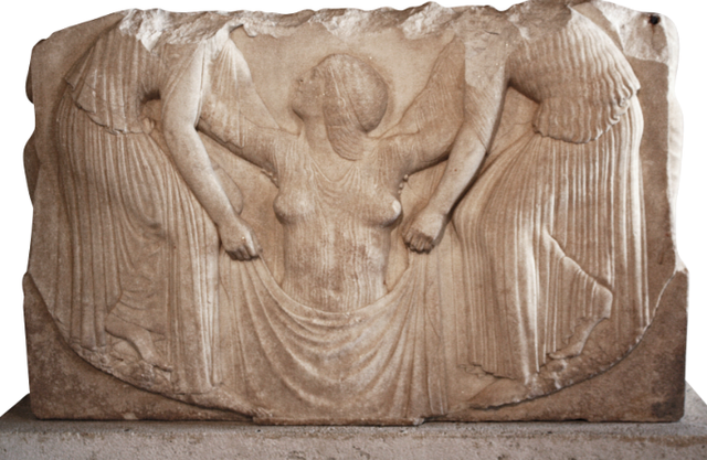 路德维希宝座浮雕上,两位荷莱(掌管四季的女神)在帮助诞生于海中的阿佛洛狄忒。《维纳斯与阿佛洛狄忒》内页插图。