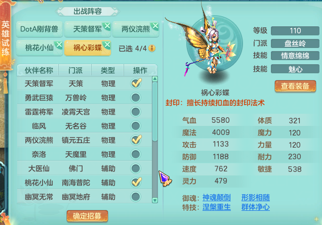 2、招募伙伴的特技为职业固定,比如物理职业必带破血。