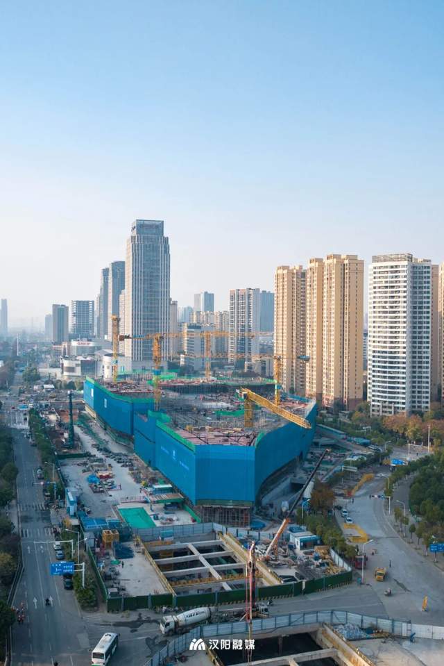 站在汉阳四新方岛的工地上,武汉金茂览秀城在塔吊与安全网的围合中正层层生长。眼下主体已建至5层高,与地铁11号线四期的合建部分大致成形,出口也在同步施工。