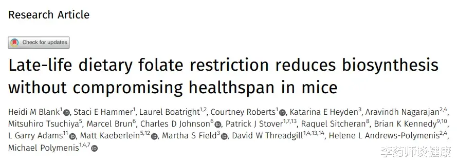 Blank, H. M.,et al.(2024). Late-life dietary folate restriction reduces biosynthesis without compromising healthspan in mice.Life Science Alliance.