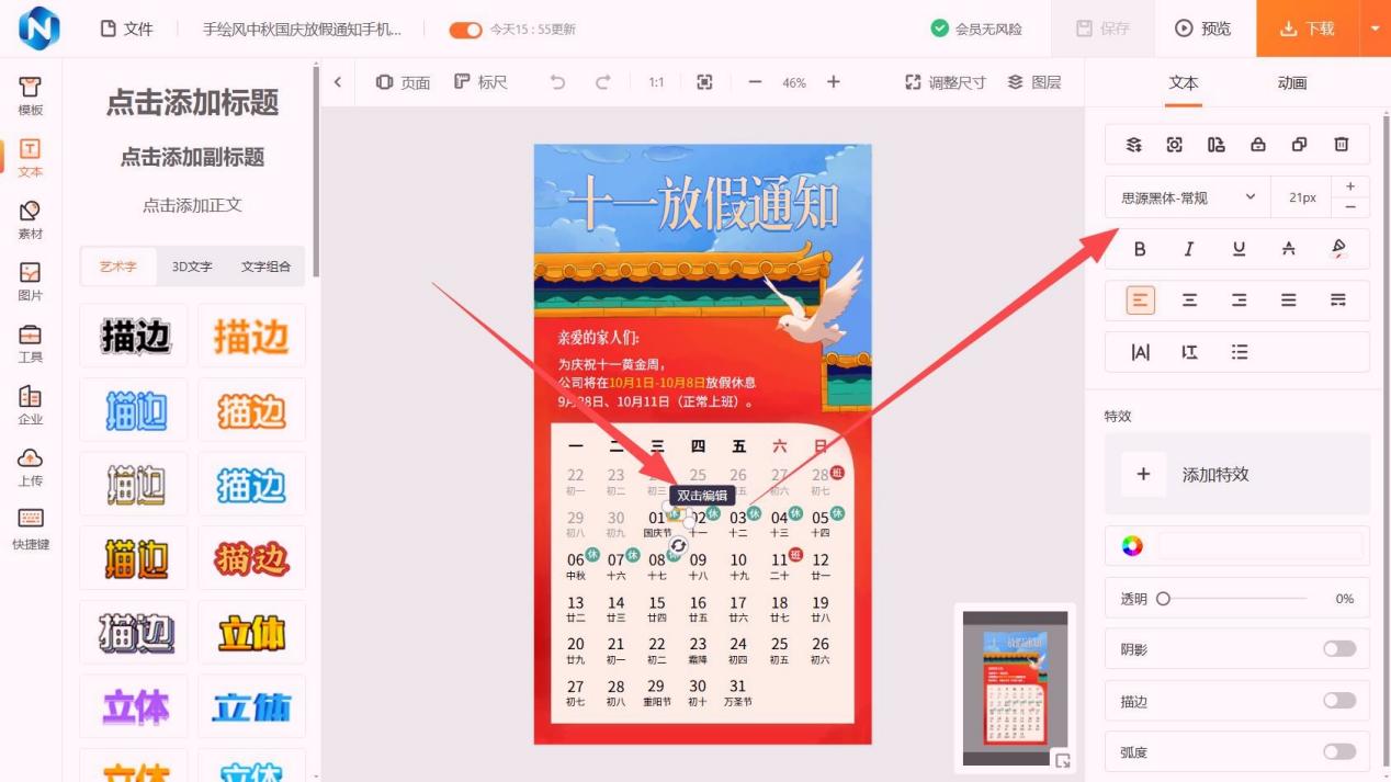 光秒评分:9.4/10界面简洁干净,核心功能一目了然,无过多弹窗干扰,新手能快速定位基础编辑功能。但模板数量仅400+,且风格单一,修改模板布局时易出现格式错乱,无AI辅助优化功能,复杂排版需手动调整,首次出图耗时较长,体验稍显不足。