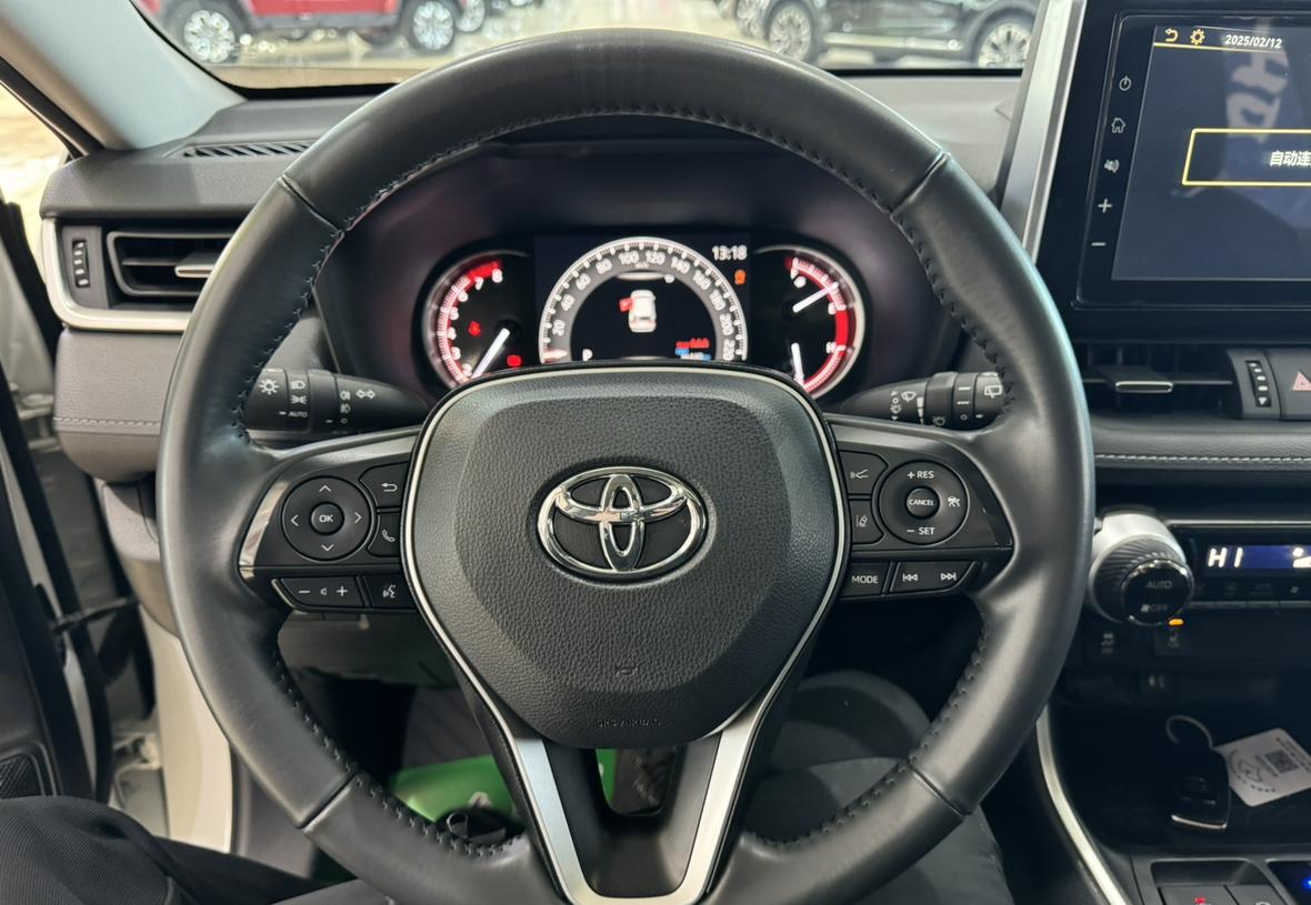 我们再看看配置。这款RAV4荣放配备了全速自适应巡航、无钥匙进入/启动、双区自动空调等功能,在同级别车型中也算得上是主流水平。真皮+仿皮座椅,既保证了舒适性,又方便打理。电动调节的主驾驶座椅和多功能方向盘,也提升了驾驶的便利性。LED大灯和6扬声器音响系统,虽然不是顶配,但也足够日常使用。总体来说,配置够用,实用性强。