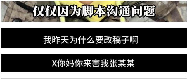 她说事情的起因是因为张大大对脚本提出不满,有一次在工作会议上,他竟然对她大发雷霆,说什么“我昨天为什么要改稿子?