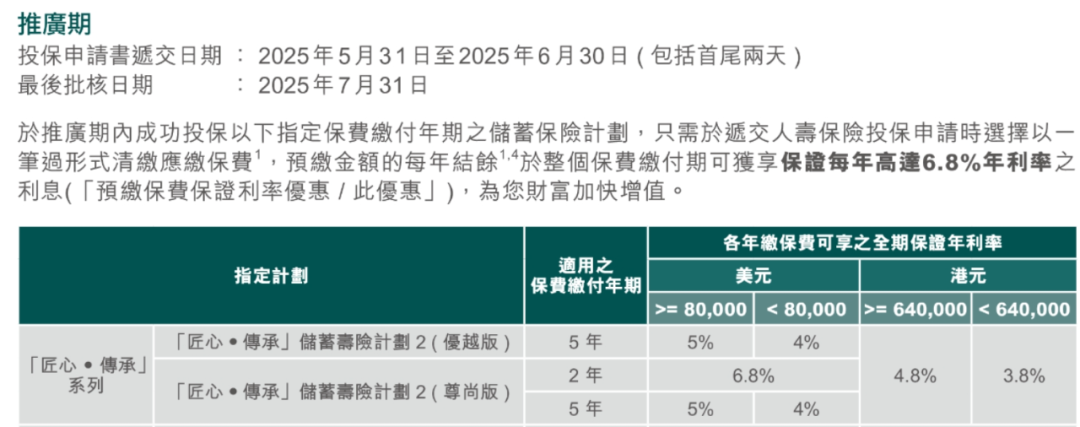 「匠心传承2」2年预缴,美元保单享6.8%保证年利率,