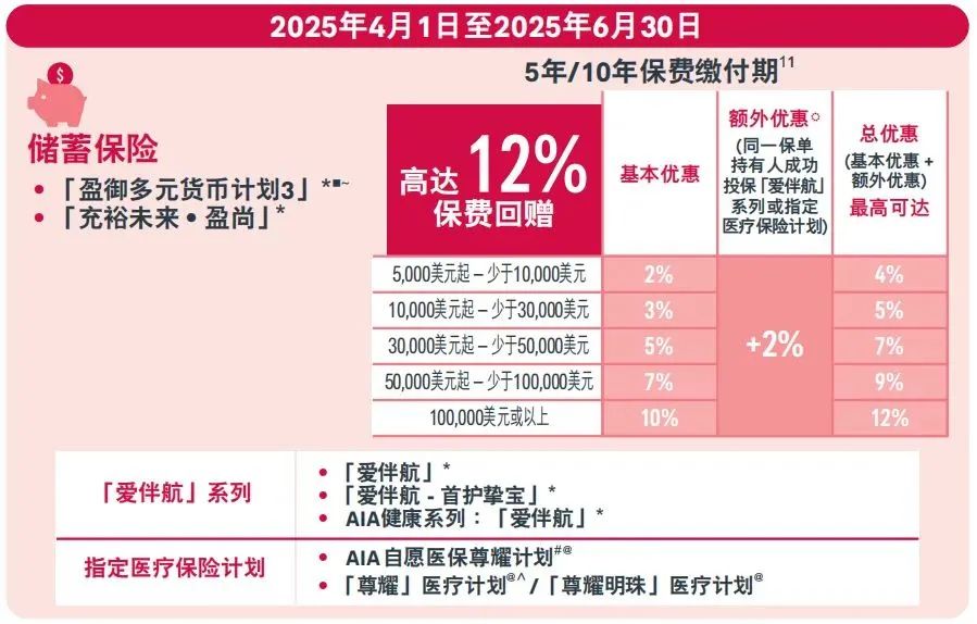 如果额外投保指定医疗计划,保费回赠还会增加3%/6%,最高可达25%/28%。