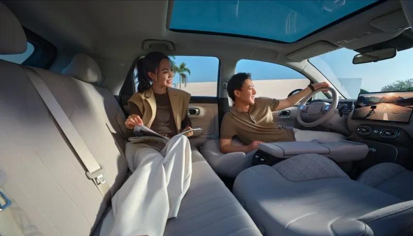 更为颠覆的是AION UT的空间利用效率。尽管它的车身尺寸并不算大,但内饰空间的设计却出乎意料地宽敞。3180毫米的车轴距离,为后排乘客提供了非常充足的腿部空间,甚至可以翘起二郎腿。这对于不少年轻家庭来说,再带上孩子或者朋友出游,是一件十分愉快的事情。想象一下周末聚会,后备箱可以装下折叠自行车,后排座满了零食和饮料,没有拥挤感,充分体验到“出游自由”。
