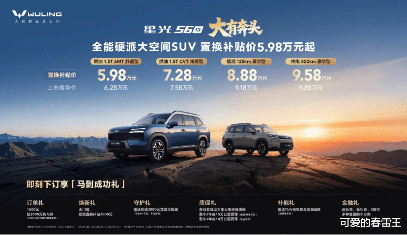 自2026年1月15日起至2月15日,在五菱汽车APP/小程序等官方渠道,即刻下订享「马到成功礼」,包括:
