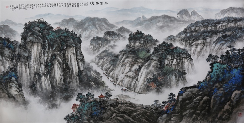 国画创作主攻山水画,兼及人物和花鸟画。因为与徐霞客是同乡,羡慕徐霞客“朝碧海而暮苍梧”的探索精神,所以多年来重走霞客路,创作《水墨霞客路》山水画系列数百幅。另有《宝岛游踪》《东瀛撷芳》《西欧掠影》《黉序宏开》等系列,人物画有《抗疫群英谱》《奥运奖牌榜》等系列。曾在国内外多次举办个人画展及国内外艺术展览。著有《工业设计资料集(丛书)》《老速写》《中国高等艺术院校名师教学范本—刘观庆山水画作品选》《世界高等艺术院校名师教学案例—刘观庆国画作品》等专业著作,作品入编《中国近现代名家典藏画集综合卷》等多种书刊。著名艺术评论家、中央美术学院邵大箴教授在《君子不器 文武兼资》的评论中说:“他,是大学讲台上诲人不倦的导师,也是沿着徐霞客足迹前进的行者;他,是主持准高速内燃机车的造型设计总负责人,也是为山水立骨传神的水墨大家;……刘观庆先生,以精心设计的火车追风逐电,成就梦想;更以手中的画笔和一方淡墨挥斥方遒,求志达道。”