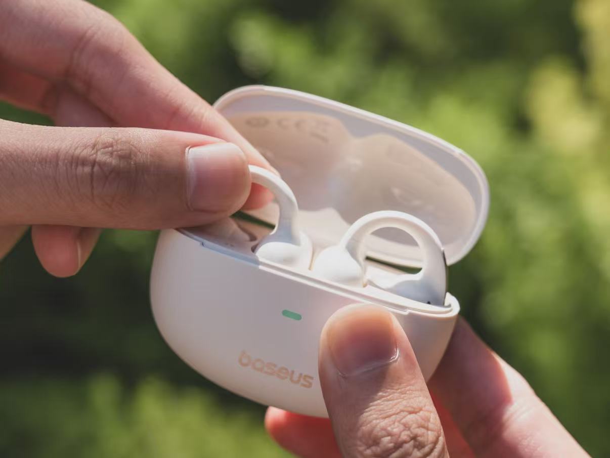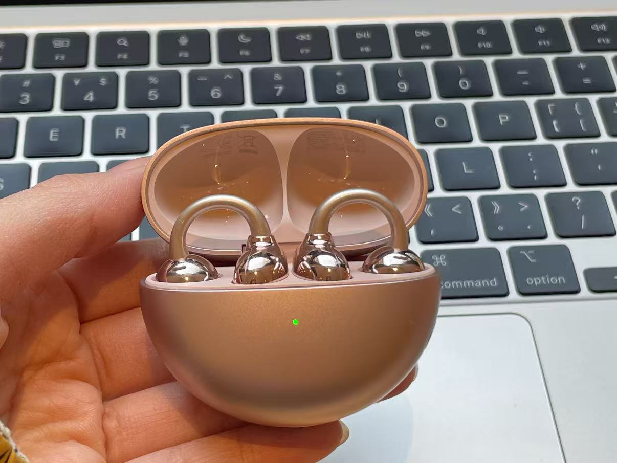 耳机设计上依托C形桥结构与人因工程学设计,能自然贴合耳形,再加上单只仅5.6g的重量,戴起来既稳当又没有压迫感,久戴也不会觉得累。