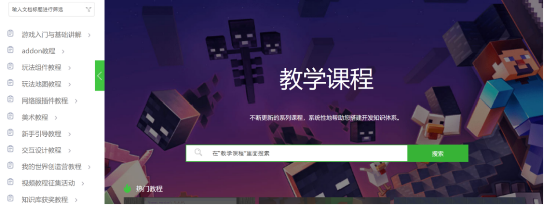 图:《我的世界》中国版开发者官网上有完善的教程,零门槛的新人也能起步