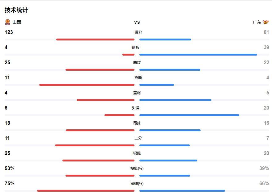 山西队从一开始就牢牢掌握了比赛的节奏,每一节都压制着广东队,比赛早早失去了悬念。
