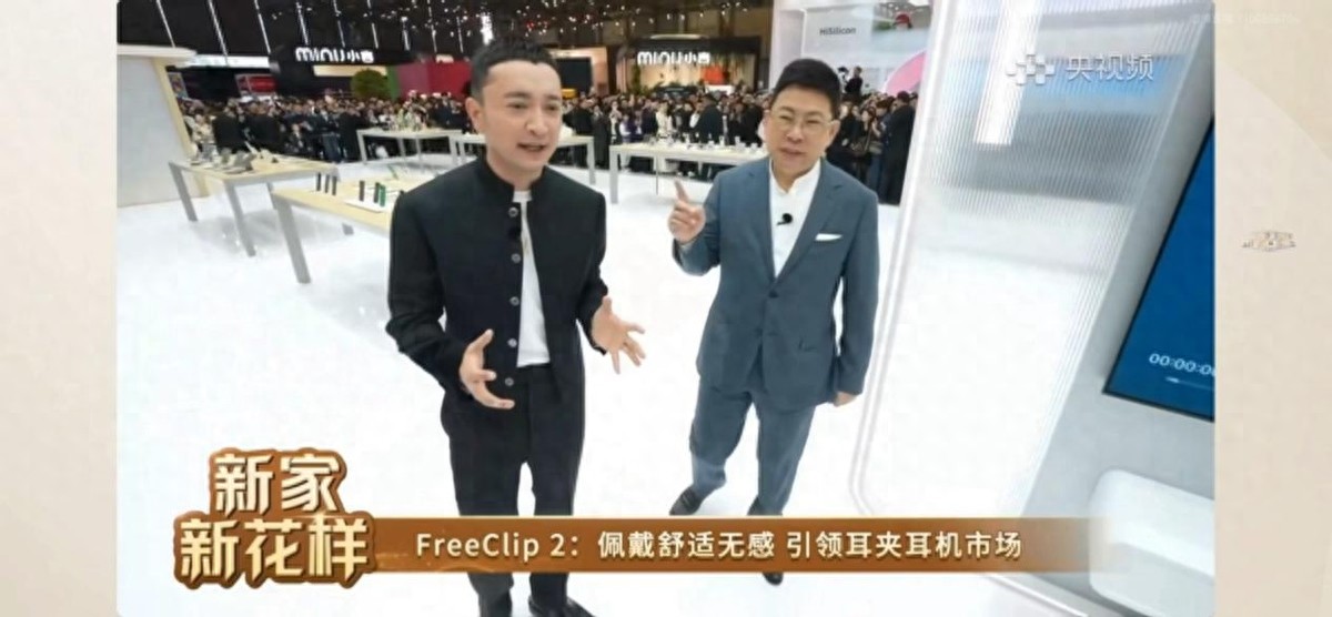 今年的AWE展,余承东与尼格买提在华为智慧生活展台的直播,无疑是众人关注的热点之一,但有心人会发现,尼格买提居然全程戴着耳机,并和余承东顺畅沟通 。果然在后续的交流中他们就提到了这款产品:华为FreeClip 2耳夹耳机。