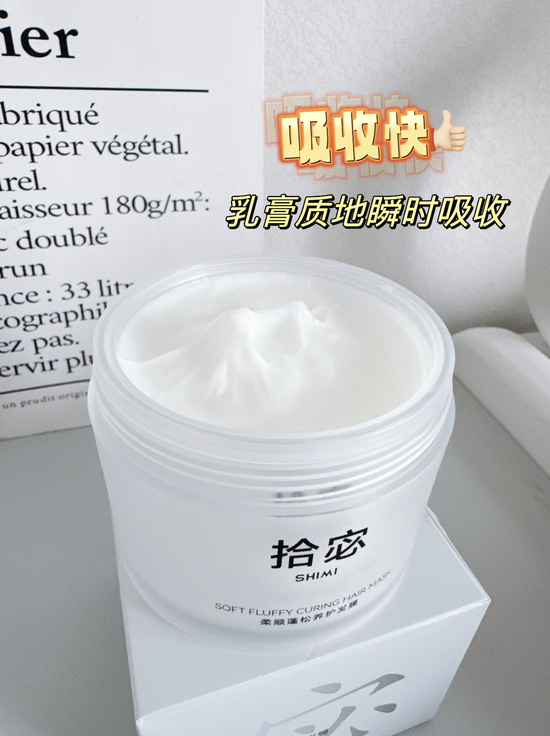 吸收很好,不假滑,乳霜质地的发膜没有结块的情况,抹开后均匀附在发丝上,质地不粘腻,吸收的过程能清晰感受到。同时易冲洗,不会有洗不净的黏感,吹干后无厚重油膜感,整个头发都透着清爽。用着超方便,一点都不麻烦,免蒸不用加热,不需要用发帽包裹,不需要像其他发膜要等很久,居家护发超轻松,头发清爽无负担,发丝一直轻盈不扁塌,新手也能轻松用。