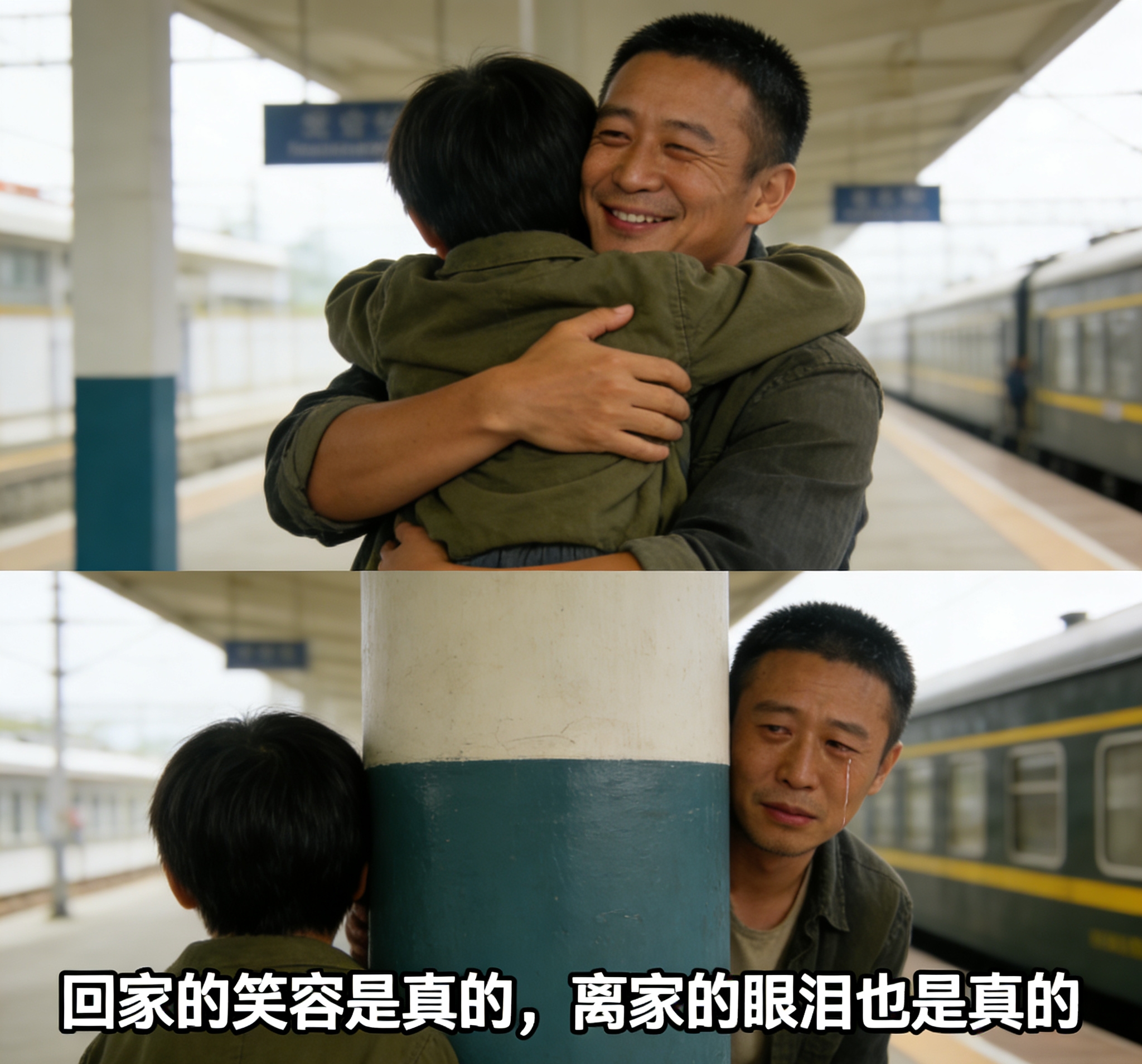 昨天在高铁站,撞见一个40多岁的大哥蹲在墙角打电话,声音压得极低,却带着哭腔:“崽崽乖,爸爸下个月就回家,给你买奥特曼……”