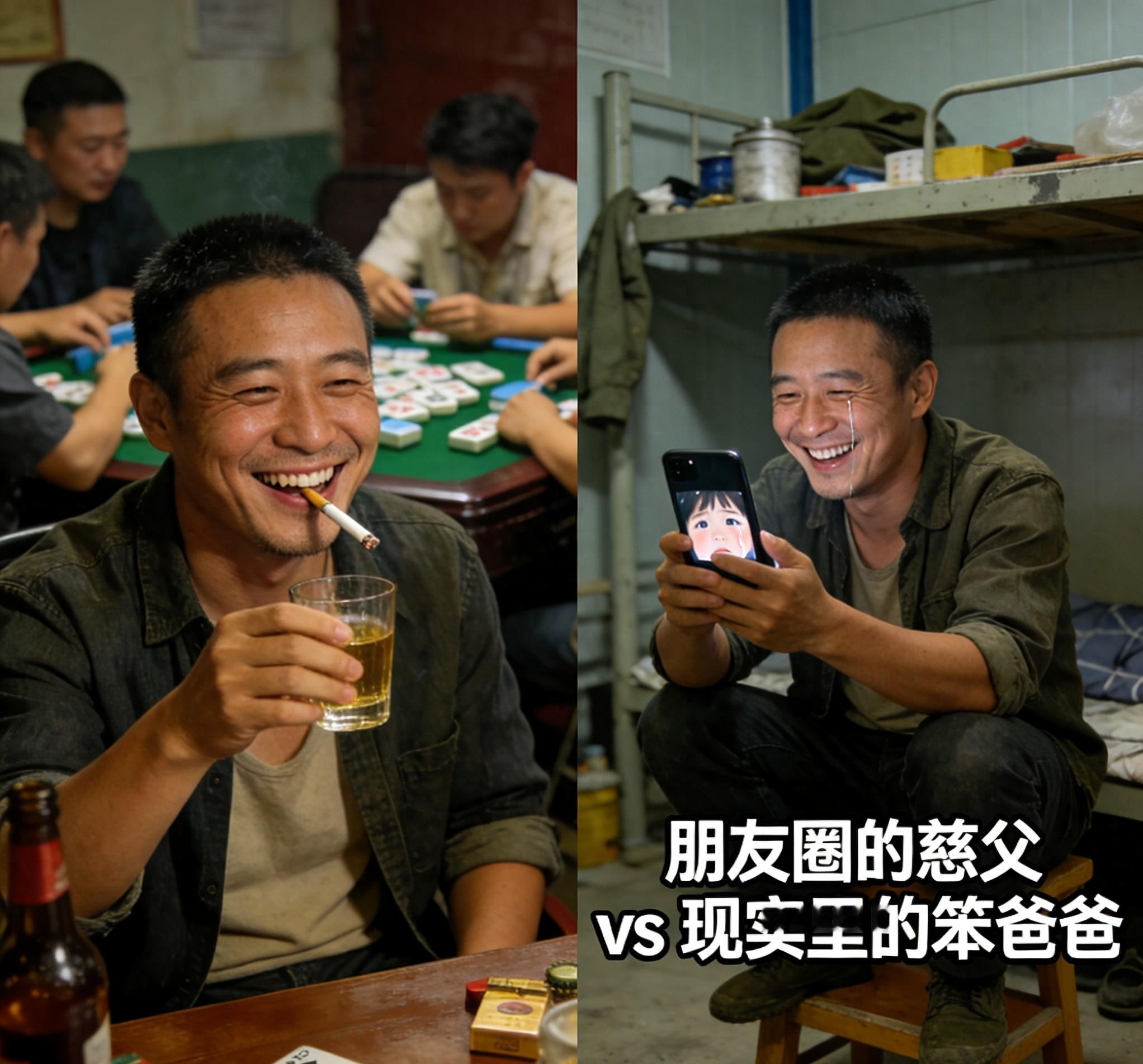 1. 朋友圈三天两头发“想我的宝”,配一张孩子的照片,底下点赞无数,转头却在工棚里打牌喝酒到半夜,连孩子的视频电话都懒得接;