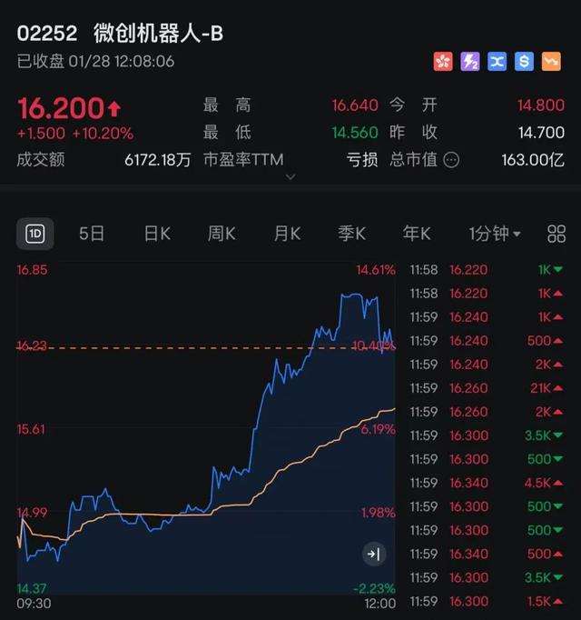微创机器人-B涨超10%。