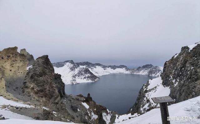对,这儿就是长白山,也是中朝边界鸭绿江的起始地。这么美的自然景色,原本全在中国的地界上,但后来划了一半给朝鲜,就成了两国的分界线。