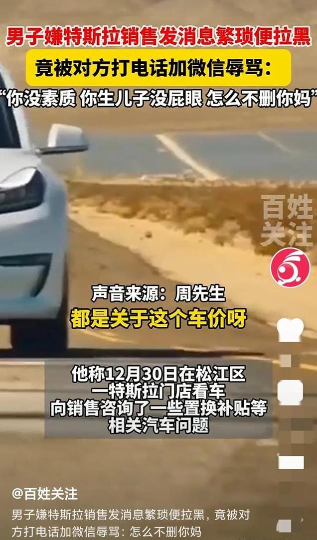 2025年开年第一天,上海特斯拉一展厅销售火了,不是因为他业绩多么优秀,而是因为一起“被微信拉黑”后辱骂客户的风波。