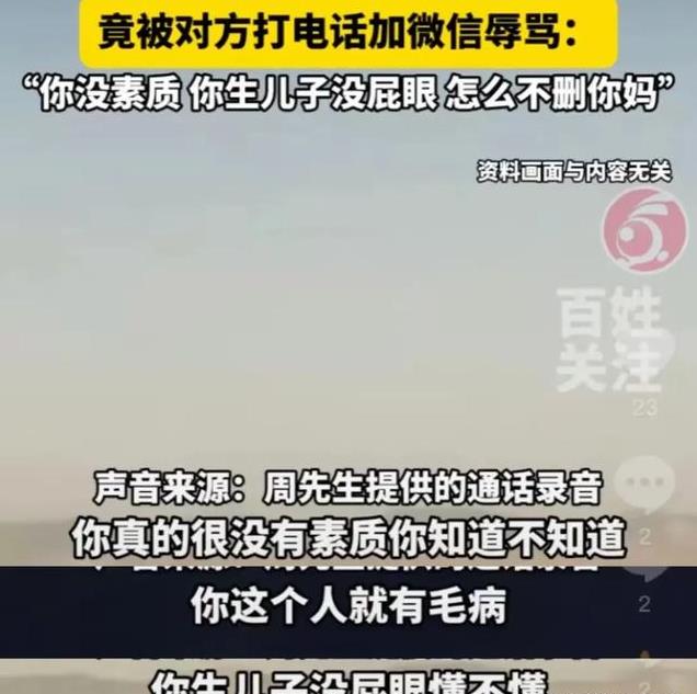 “你咋不把你妈删了呢?你真的很没素质你知不知道?你这个人就有毛病”听着电话里这些离谱过分的辱骂声,周先生感觉窝火的快要炸了。