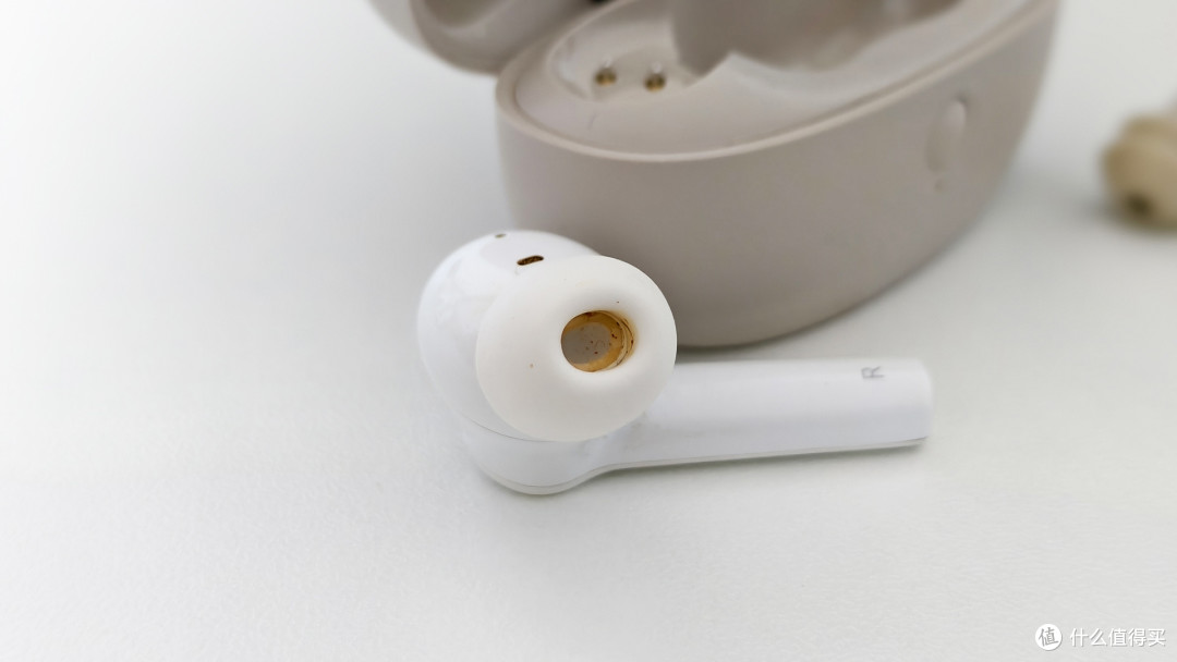 打开耳机仓就会看到精致的耳机本体,没错十分的精致,第一印象还是小,这也是为什么耳机仓设计的小巧的原因,因为耳机本体就十分小巧。