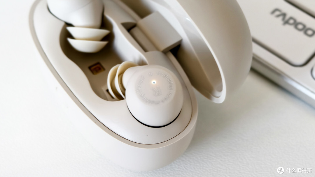 拿到耳机仓的第一感觉就是小巧玲珑,正面是配对开关实体按键和一个状态指示灯,背面是 type 充电接口。