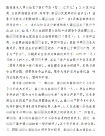 事实收养认定陷僵局,法律与情理的双重困境2025 年 7 月,崔女士向法院提起诉讼,请求依法分割谭某名下的三套房产及银行存款。她的核心依据是:三十八年的户籍 “长女”登记具有官方公信力,当年谭某夫妇有收养意愿并办理了户口迁移,已形成事实上的抚养关系。