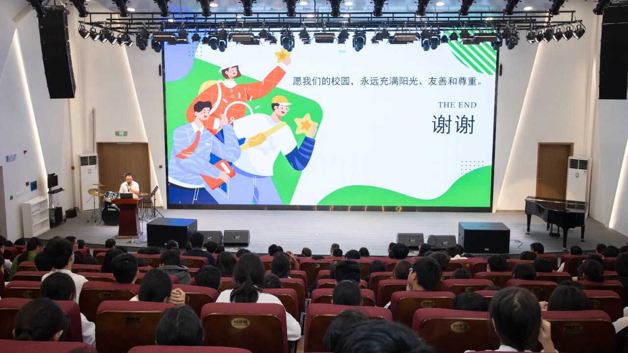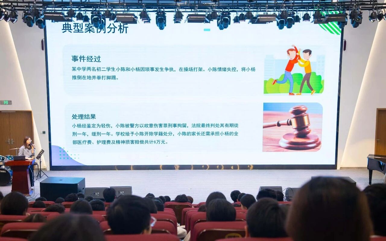 “同学们,法律不仅是行为的底线,更是保护我们每个人的坚固盾牌。希望你们能将从这堂课上学到的知识带回班级、带回家中,做一名知法、懂法、守法的青春同行者。让我们共同守护这片校园的宁静与美好。”