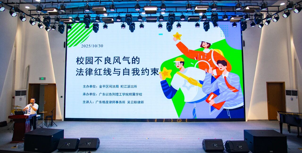 近日,在由汕头市金平区司法局、汕头市金平区鮀江派出所联合主办,广东以色列理工学院附属学校协办的一场校园普法活动中,广东格度律师事务所的吴云盼律师,就与同学们聊了聊那些校园里可能触碰法律红线的“小事”。