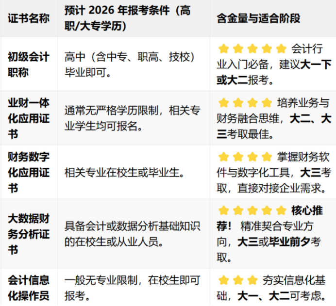 从今天起,请将证书规划融入你的学业蓝图。分阶段、有重点地推进,让每一张证书都成为你能力进阶的坚实台阶,最终在数字化财务的浪潮中,赢得属于自己的广阔天地!