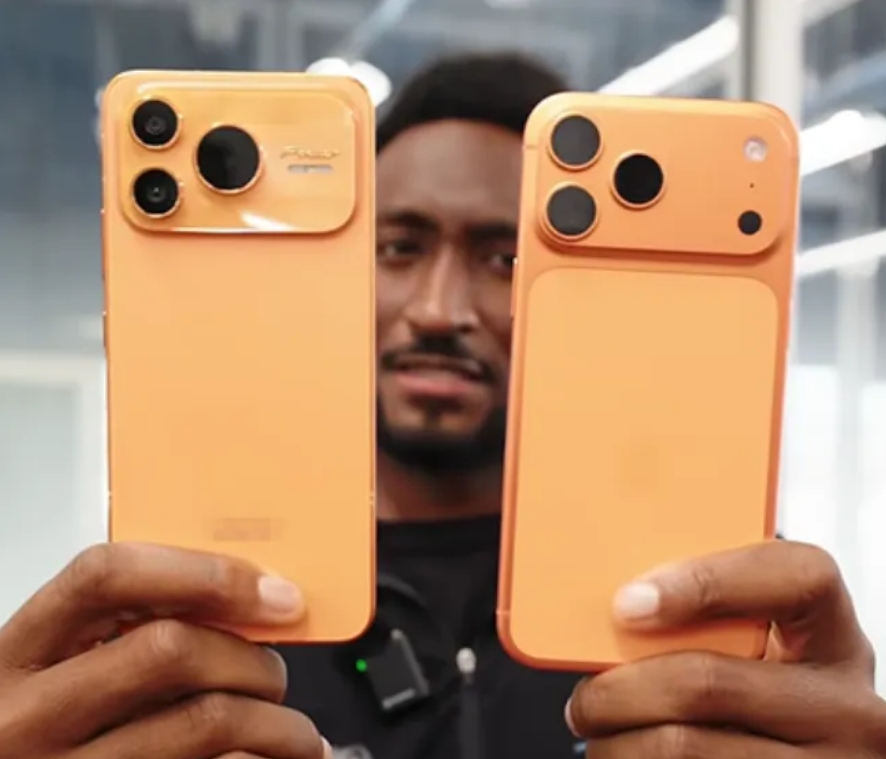 知名数码博主MKBHD在网上直接放了对比图,将两款手机放在一起,背面几乎分不清谁是谁,网友看了都懵:“这相似度,说是同个模具出来的都有人信”。