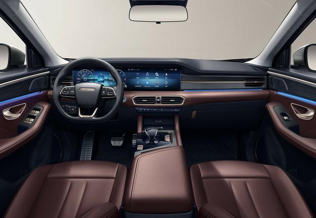 新车内饰布局规整,中控采用双联屏幕设计,由两块12.3英寸液晶屏幕组成,分别为全液晶仪表和中控屏,符合当前常见设计趋势。