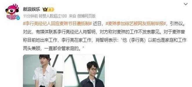 网友吃瓜少女说:麦琳真的太作了,对李行亮一点都不尊重,还各种PUA!这种人就应该被抵制!