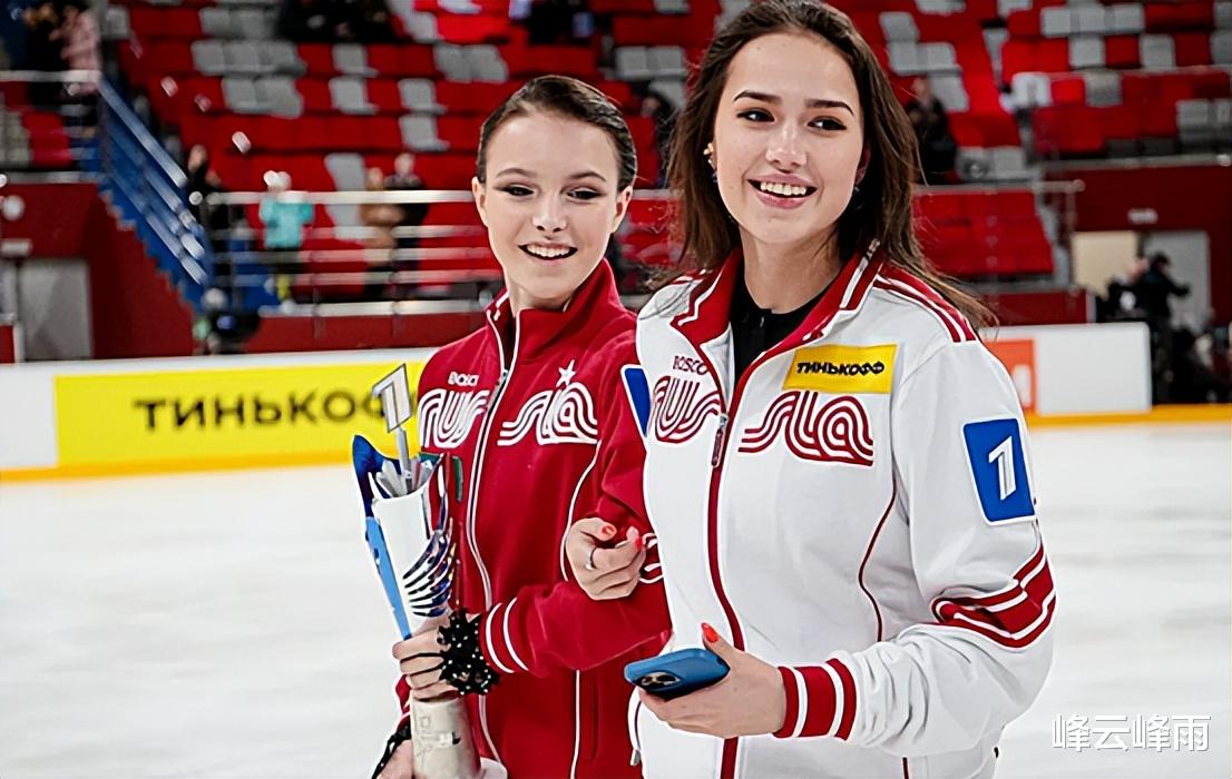 两位冬奥会冠军扎吉托娃、谢尔巴科娃(左)
