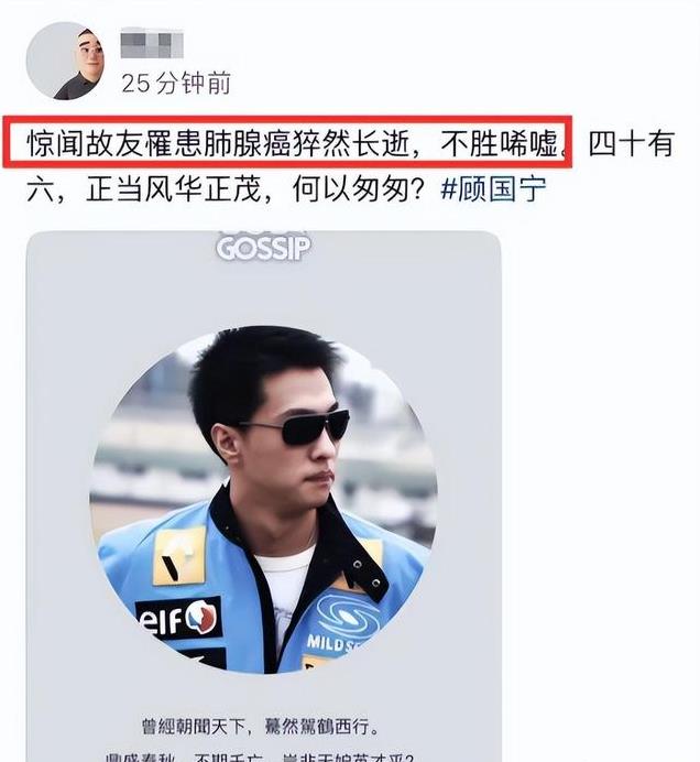 也正是在顾国宁的朋友发出来的动态之中,大家才得知顾国宁去世的原因。