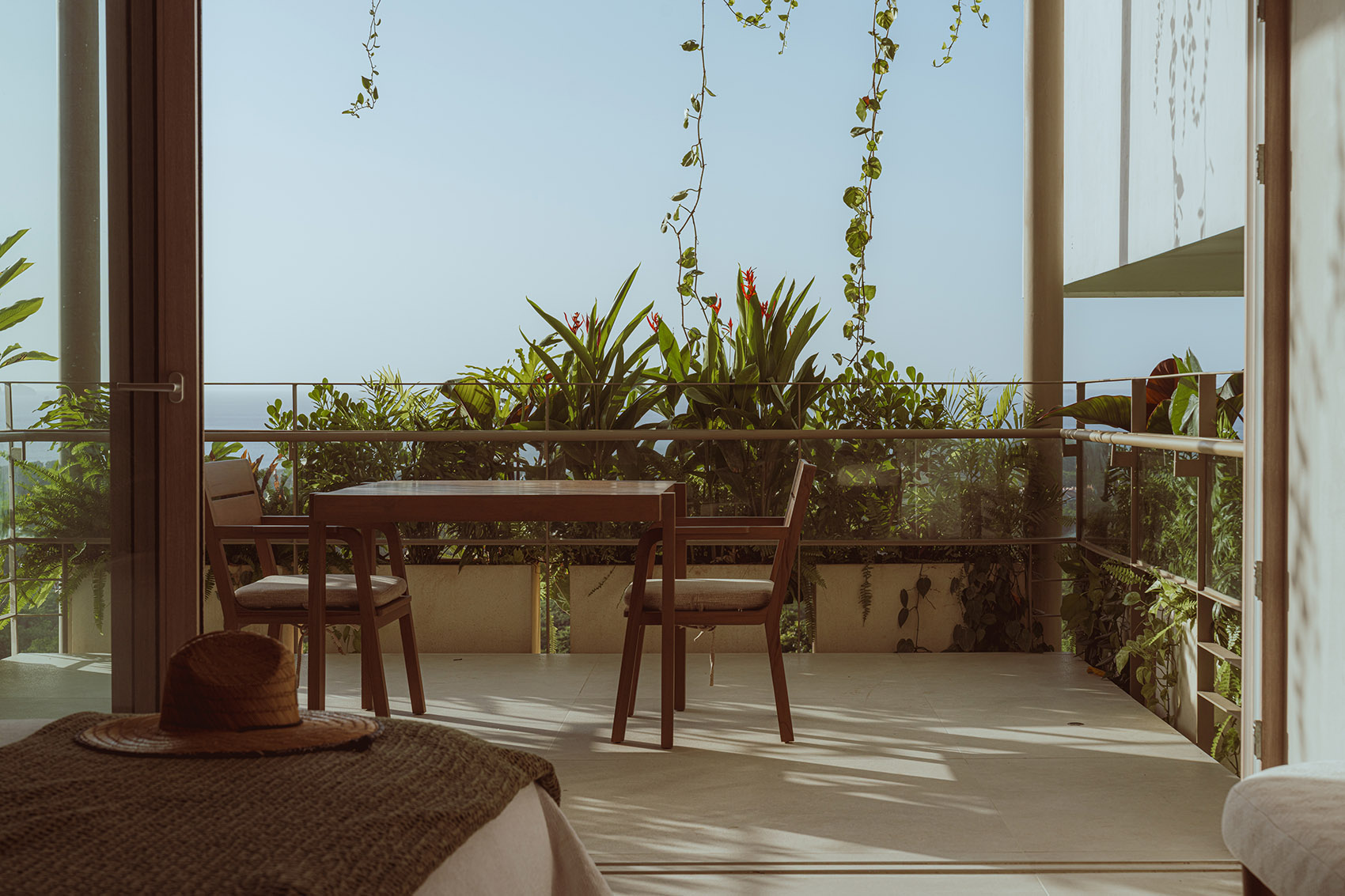 室内空间设计大胆采用了鲜明的表现手法和对比元素,如钴蓝色的扶手椅,反射出海洋与天空的颜色,故意将周围的景观框定在视野之中。黑白瓷砖,呼应了哥斯达黎加传统设计中常见的图案。同时巧妙设置的开口使房子能够自然呼吸,保持全天舒适的温度。