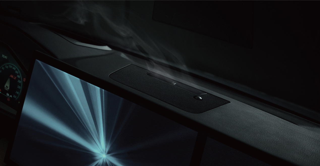 新车还带有“感官礼宾”功能,听起来很抽象,但营造出的情绪价值绝对足够治愈。它能联动车内的灯光、音乐、多媒体、香氛以及温度等,根据你的心情来切换模式。当你想要放松时,灯光会变柔和,香氛释放出淡淡的竹香;当你想要提神醒脑时,灯光变亮的同时播放轻快的音乐。值得一提的是,香氛盒采用可持续材质“锻竹”工艺制成,既环保又健康。
