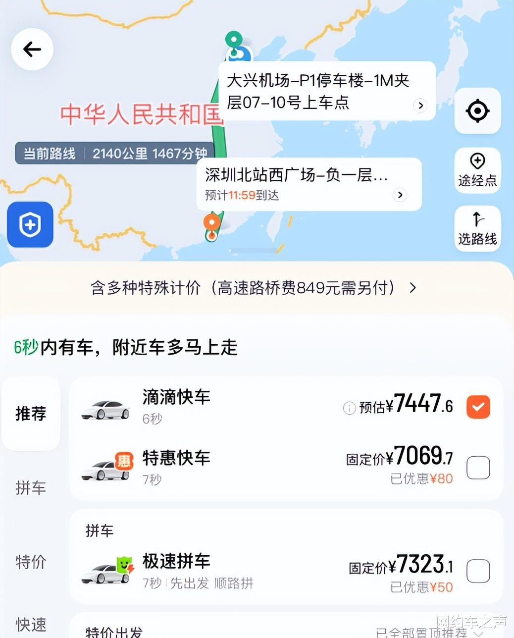 确实啊,现在网约车行业情景惨淡,单价压得比顺风车还低,更是没顺风车单子好。还有不少网约车司机转行做顺风车的,很多人不信邪,测试从北京到深圳的往返费用到底能有多少。