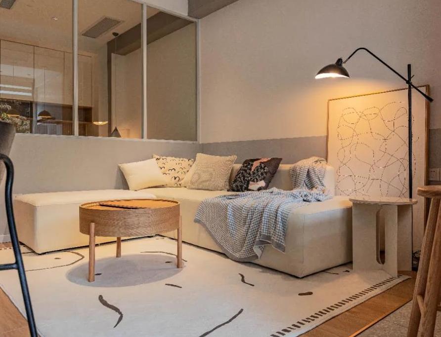 简约风的设计简单又好看,实木的地板更显温馨,再加上暖灯的装饰,公寓透露出来的家的感觉更强烈。