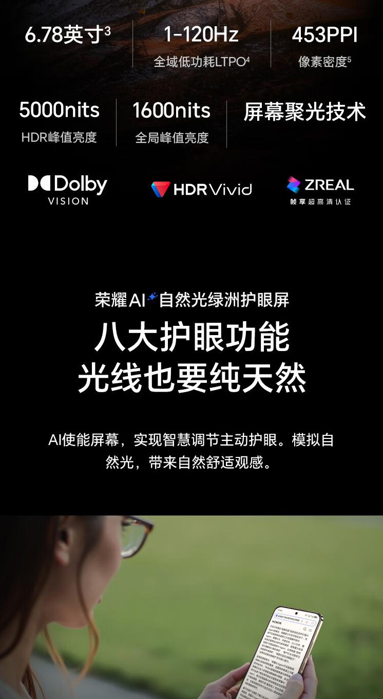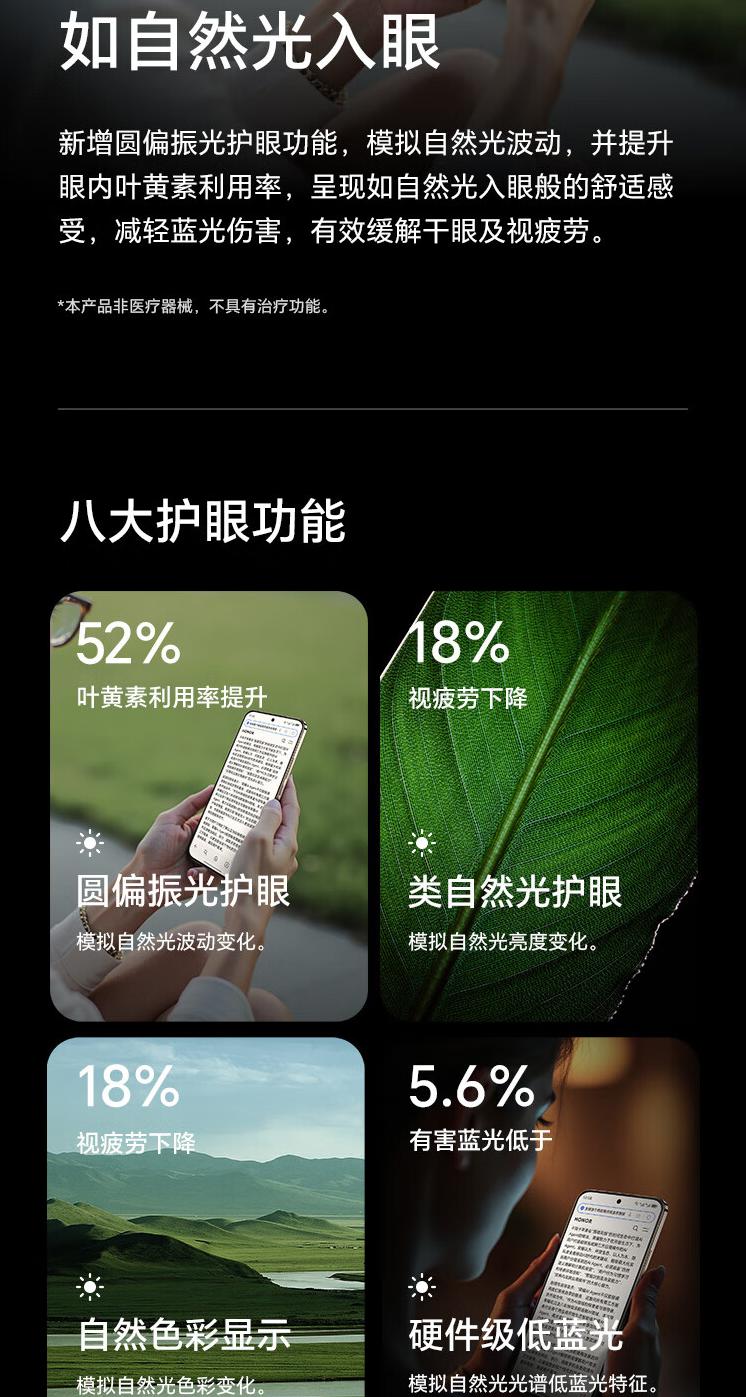 第三,荣耀Magic7搭载的绿洲护眼屏,不仅显示效果细腻,护眼功能也很出色。