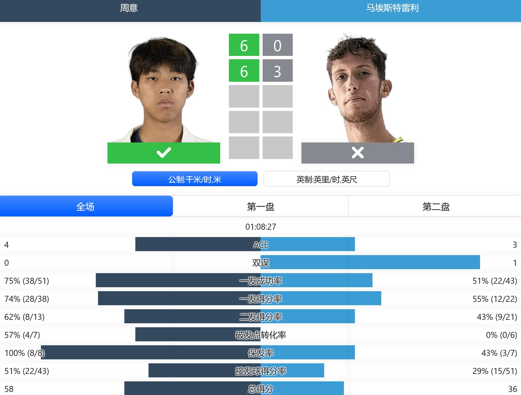 男子比赛方面,ATP250赛香港站男单资格赛第一轮,小将周意送蛋横扫8号种子马埃斯特雷利,晋级第二轮,给到球迷不小的惊喜。