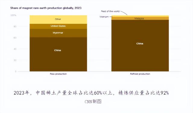 在稀土精炼和萃取技术方面,中国更是占据了全球90%的市场份额。