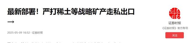 最新部署!严打稀土等战略矿产走私出口→ 2025-05-09 16:52·证券时报