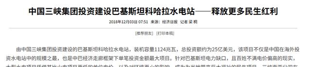 根据经济日报的报道,这个事情刊登于2018年12月3日发布的《中国三峡集团投资建设巴基斯坦科哈拉水电站——释放更多民生红利》