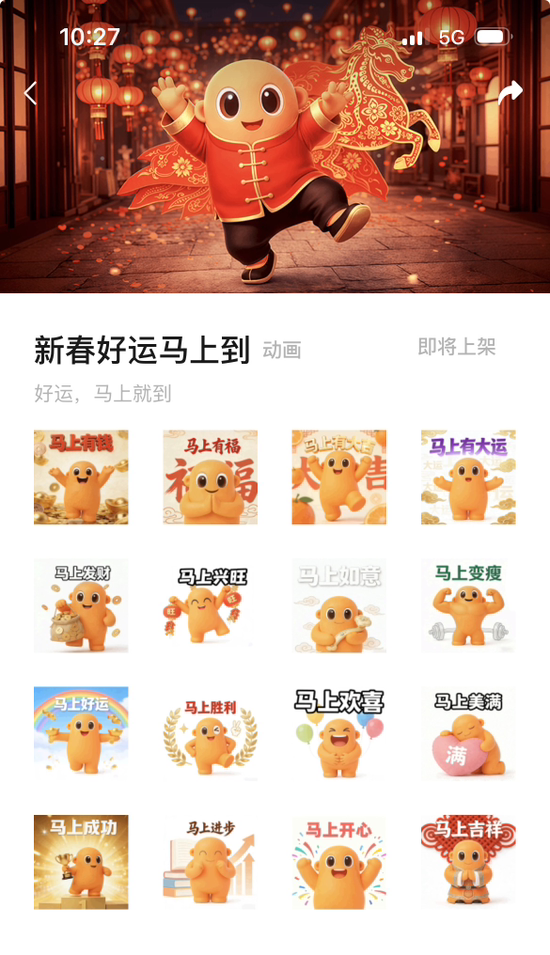 2【新春好运马上到】——结合马年元素,BOBY骑着剪纸骏马腾空而起!“马上有钱”“马上成功”“马上变瘦”等趣味梗,精准戳中打工人新年愿望。还有“过年也太开心了叭”的憨憨笑容,完美演绎假期状态,群聊斗图直接封神!