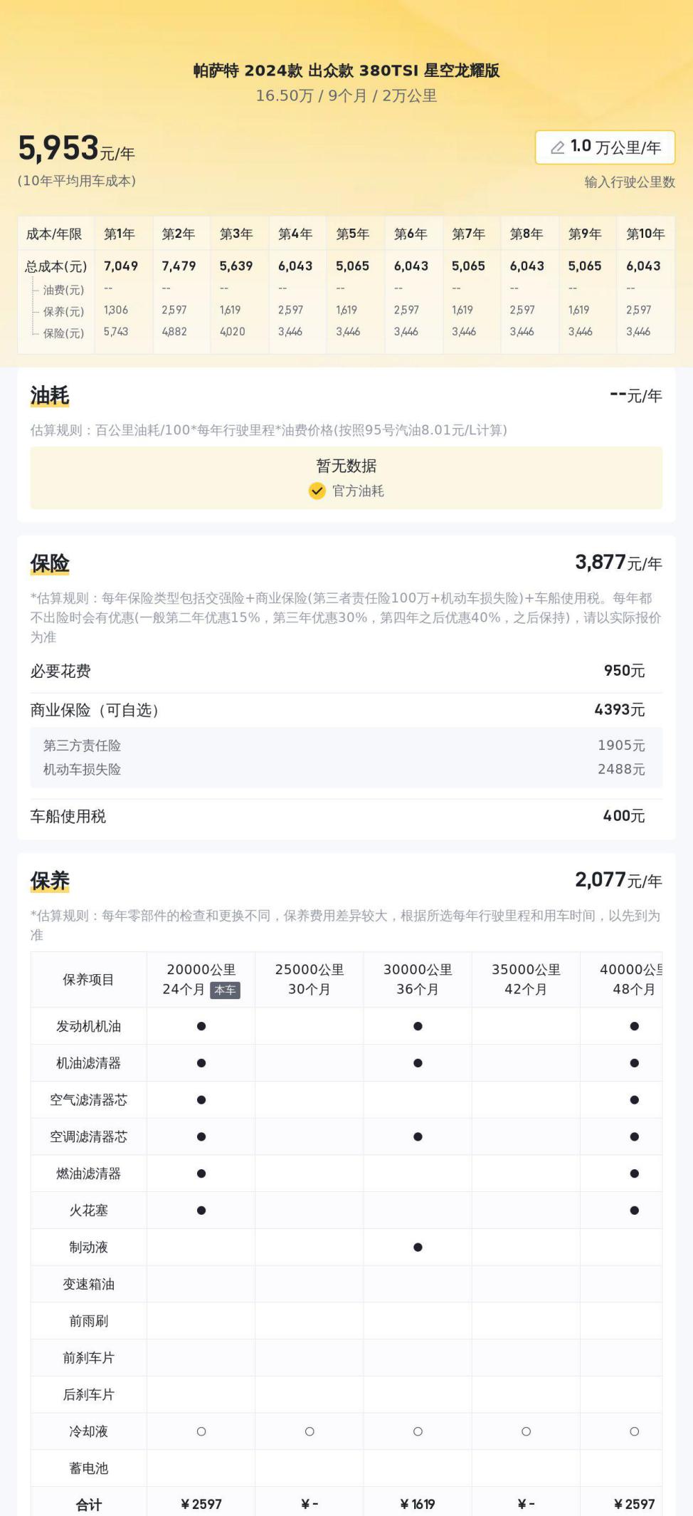 参考一些数据:根据某二手车交易平台的数据显示,同等车龄、里程的帕萨特380TSI车型,价格区间在15万-18万之间,这辆车的16.5万的售价,处于中等偏上水平。但是,这只是一个参考价格,实际价格还需要根据车况进行调整。还有,根据权威机构的统计数据,2024款帕萨特380TSI车型的平均百公里油耗为7.2L左右,考虑到城市路况和驾驶习惯,实际油耗可能更高。