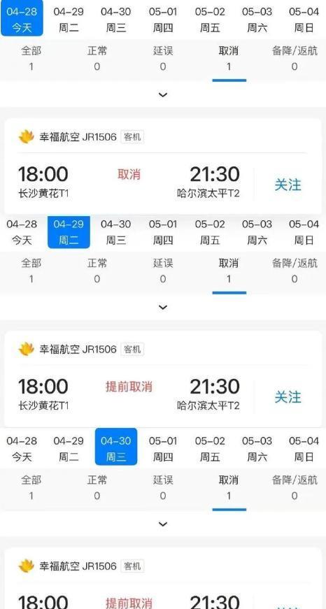 幸福航空公司竟毫无征兆的,取消了五一前三天的所有航班。